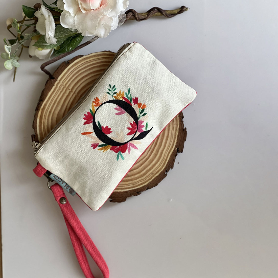 Alphabet Q 100% Cotton White Utility Pouch - 7 inches x 5 inches | Peacoy