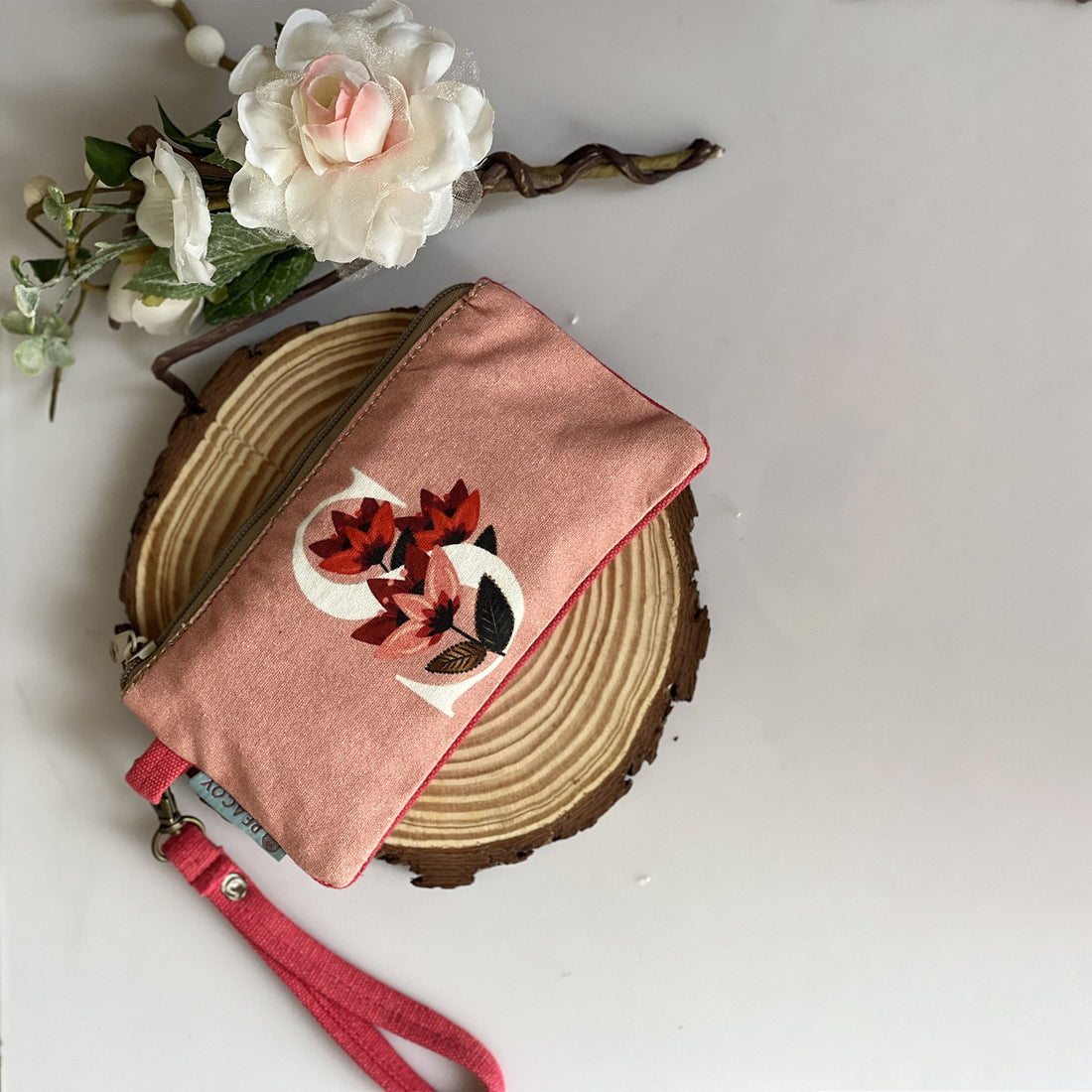 Alphabet V 100% Cotton Pink Utility Pouch - 7 inches x 5 inches | Peacoy