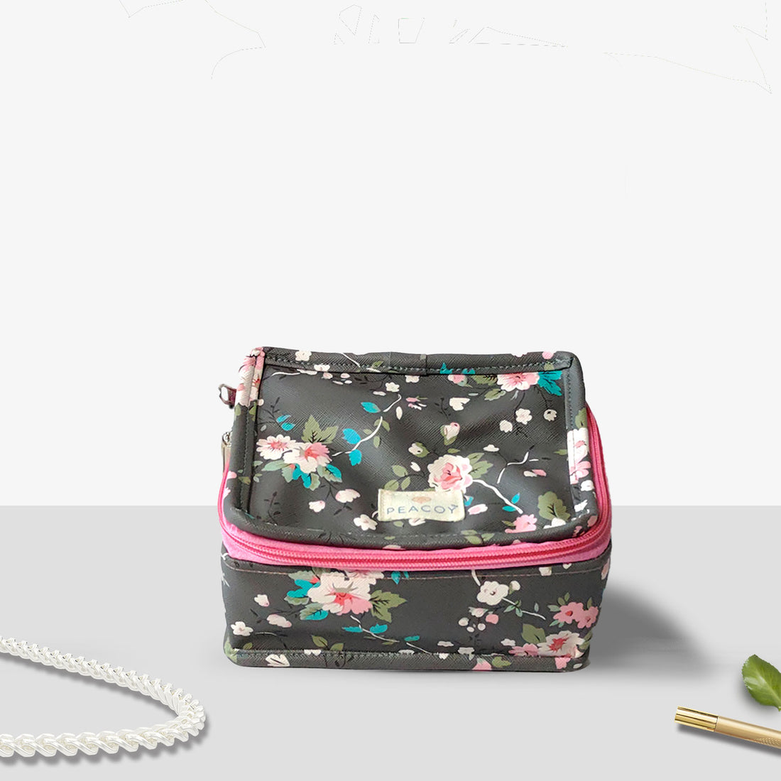 Foldable Travel Kits for Jewellery and Essentials | Grey Pink Flower Design pouch