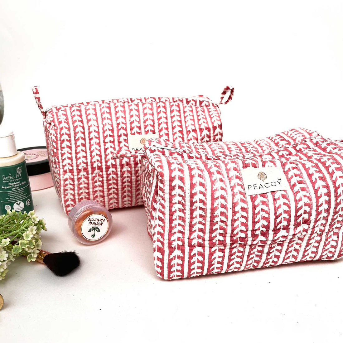 Multi Utility Travel kits Red Leaf Print (Set of two)