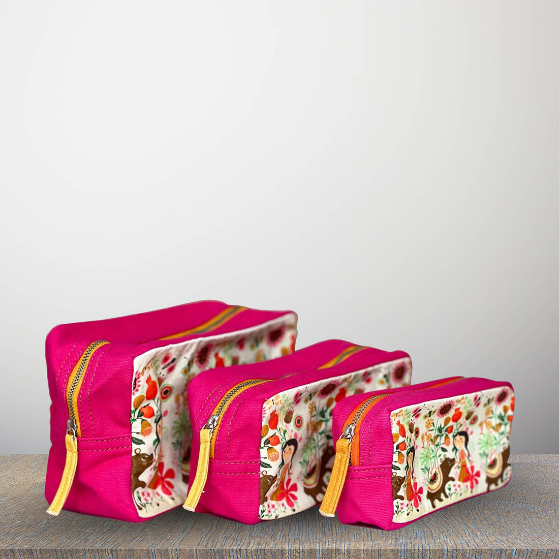 Flower printed Pink Toiletry Pouches (3 Pouches)