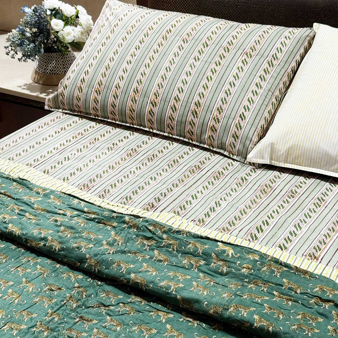 Dark Green Leopard Printed Cotton Quilt - 60 inches x 90 inches