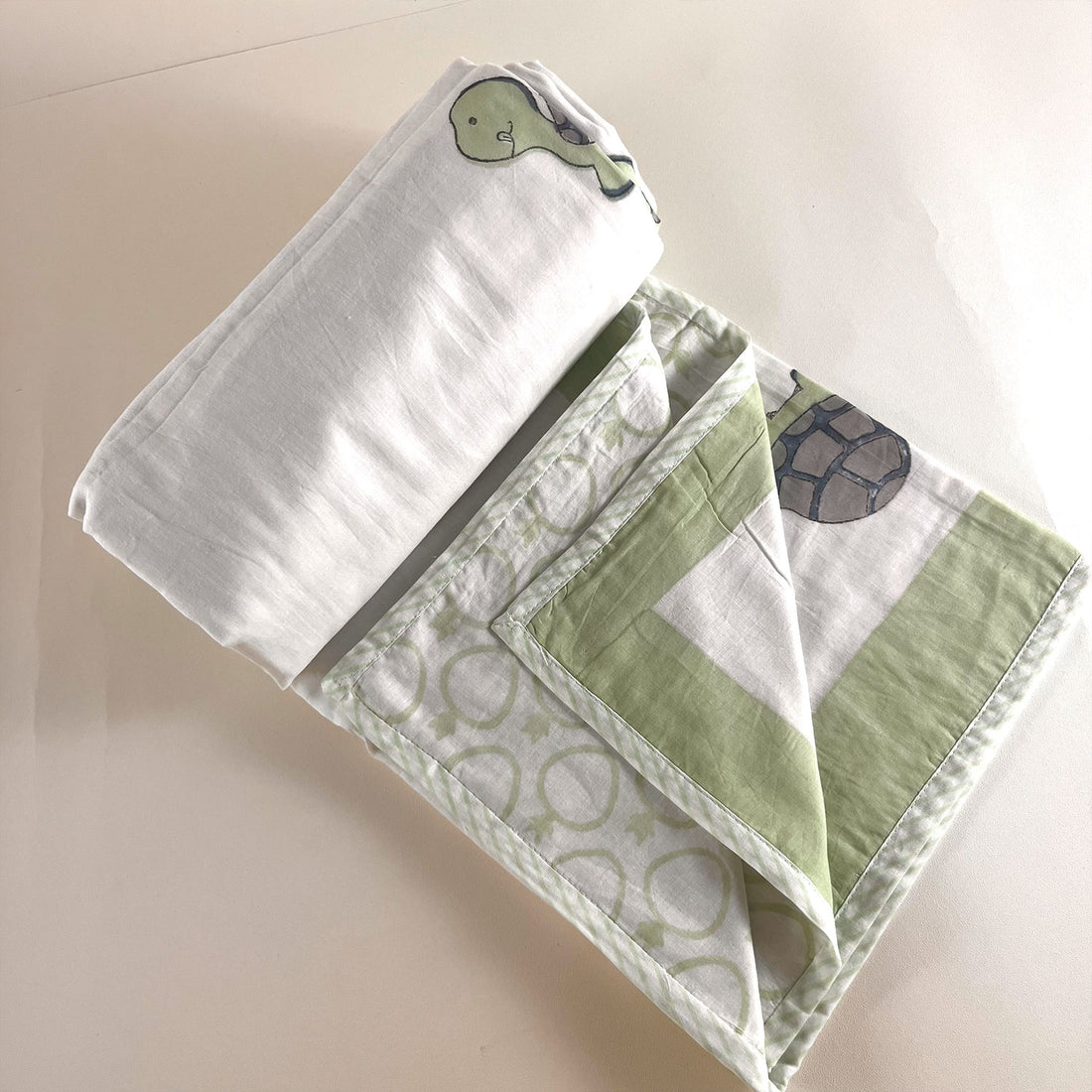 White Turtle Prints Kids Single Dohar | 40x60 Inches