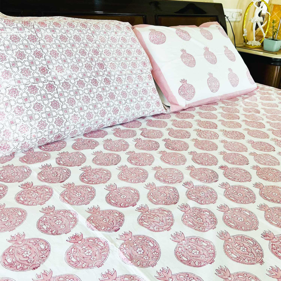 Pomegranate Motif Jaipuri Bedsheet 90"x108"