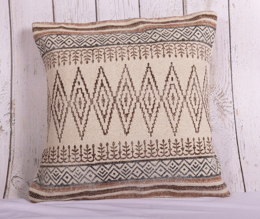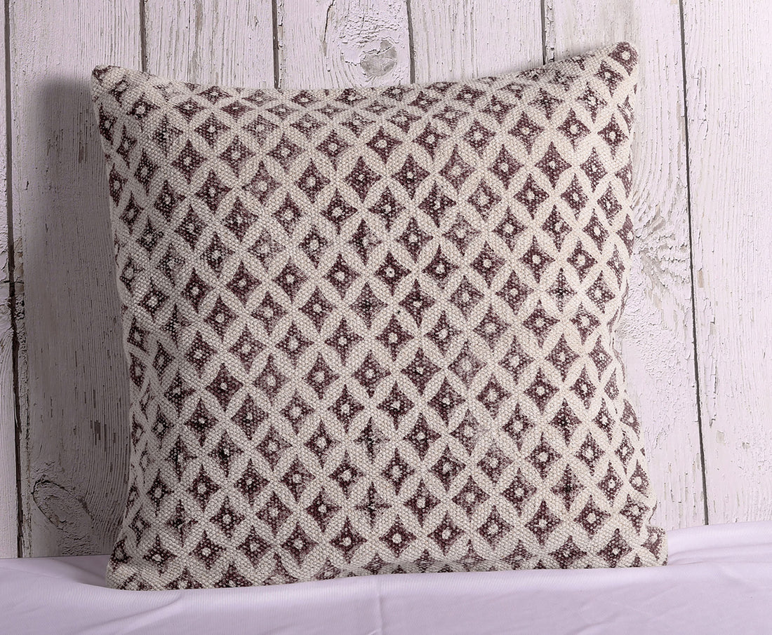 Classic Diamonds Brown Hand Block-Printed 100 % Cotton Cushion Cover - 18 x 18 inches | Peacoy