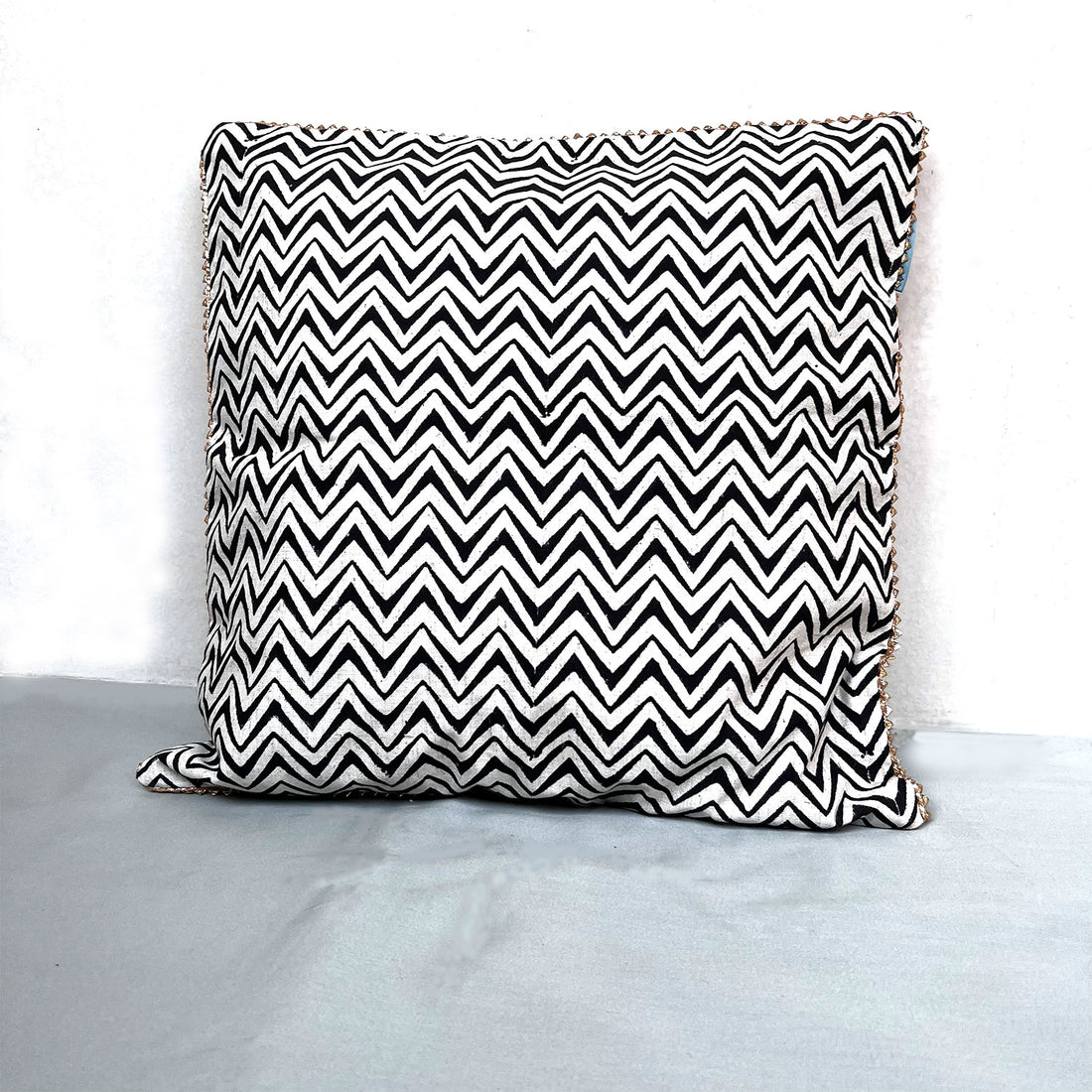 Zig-Zag Black & White Pure Cotton Cushion Cover - 16 x 16 inches