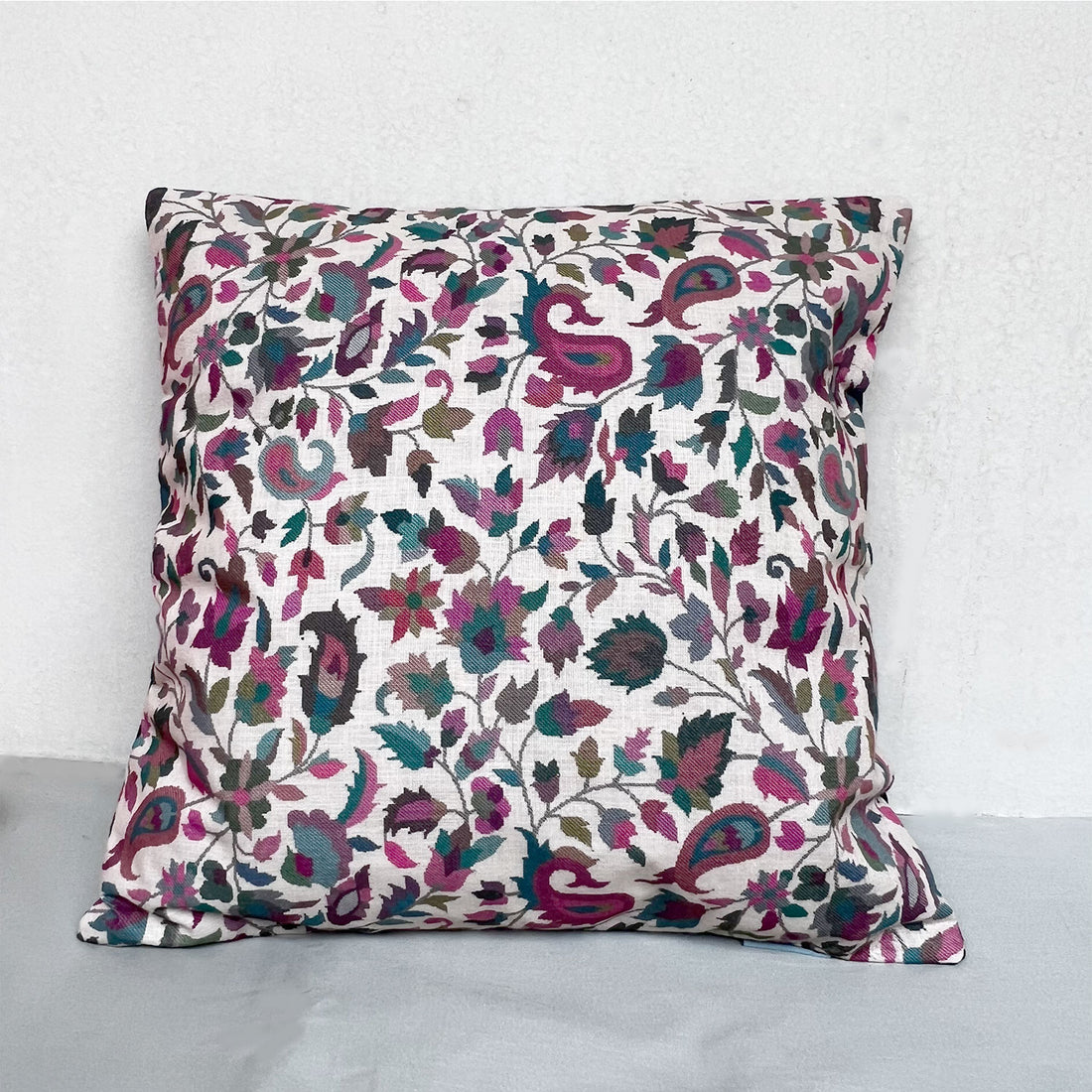 Delicate Florals Hand Block-Printed 100 % Cotton Cushion Cover - 18 x 18 inches | Peacoy