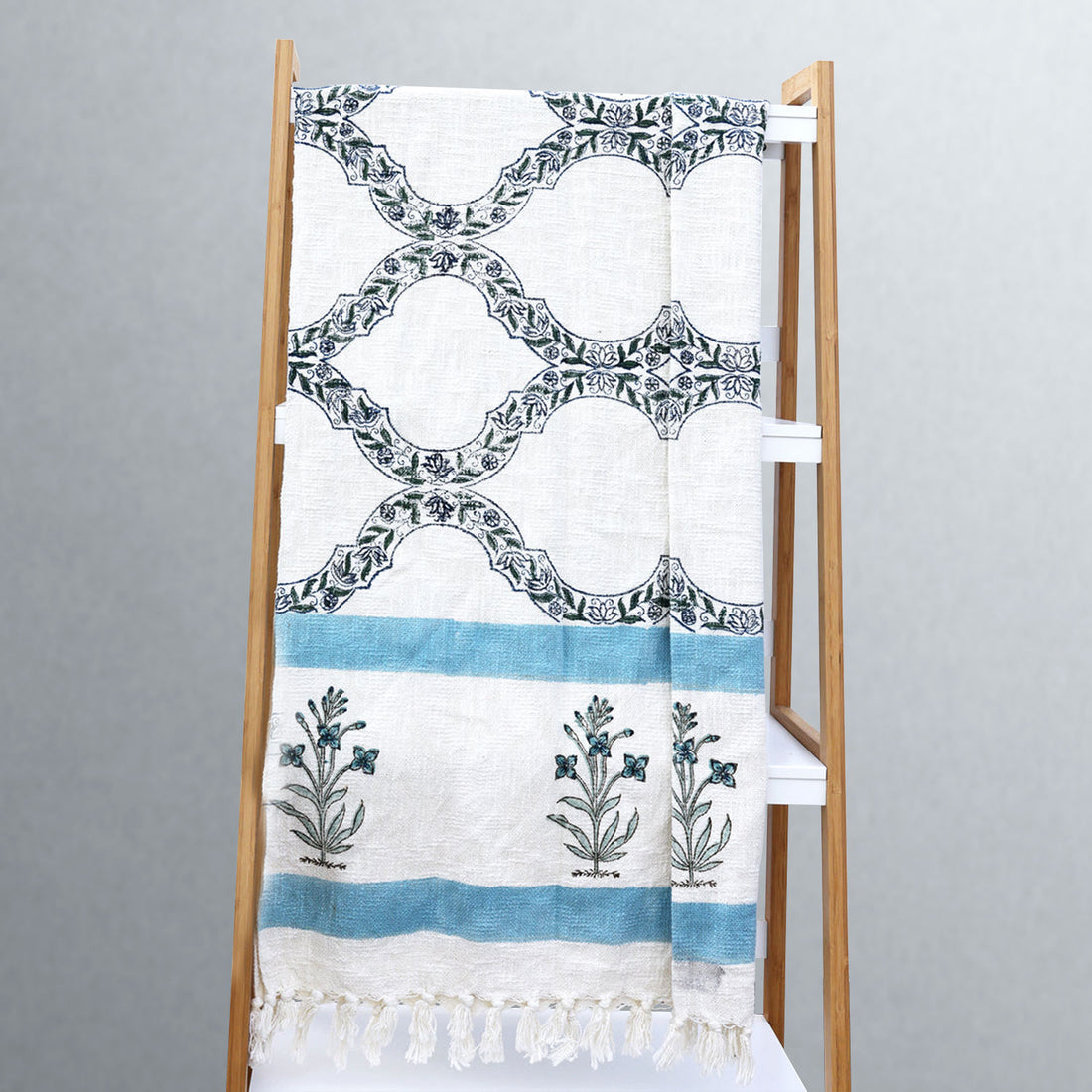 Floral Blue White Block Printed 100 % Cotton Throw - 60 inches x 48 inches