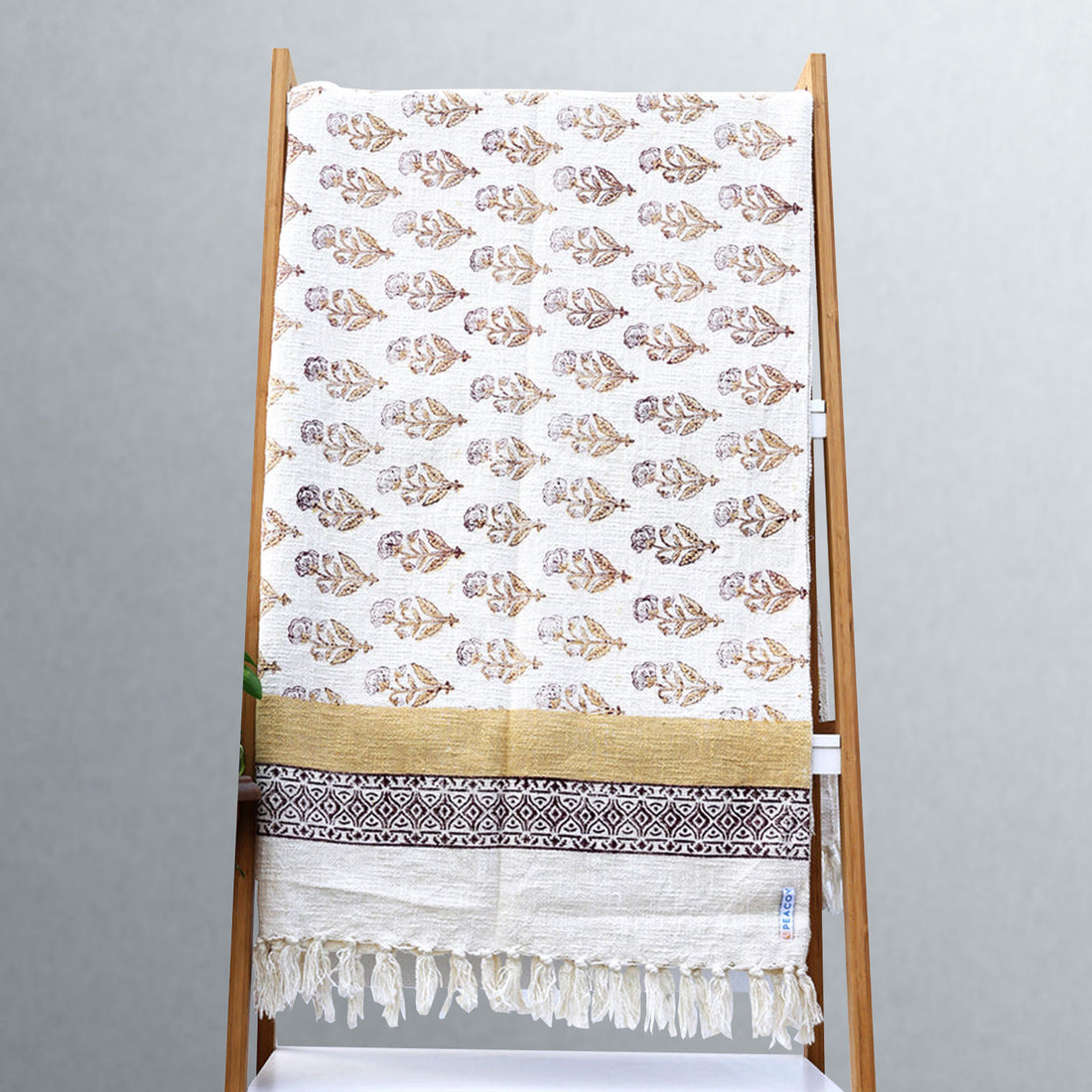 Flower Allure Brown & White Block Printed 100% Cotton Throw (70 inches x 50 inches)