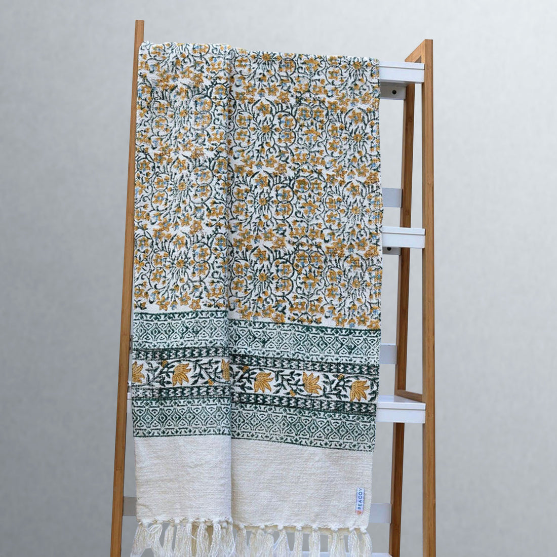 Sunny Florals Yellow & White Block Printed 100% Cotton Throw - (70 inches x 50 inches)