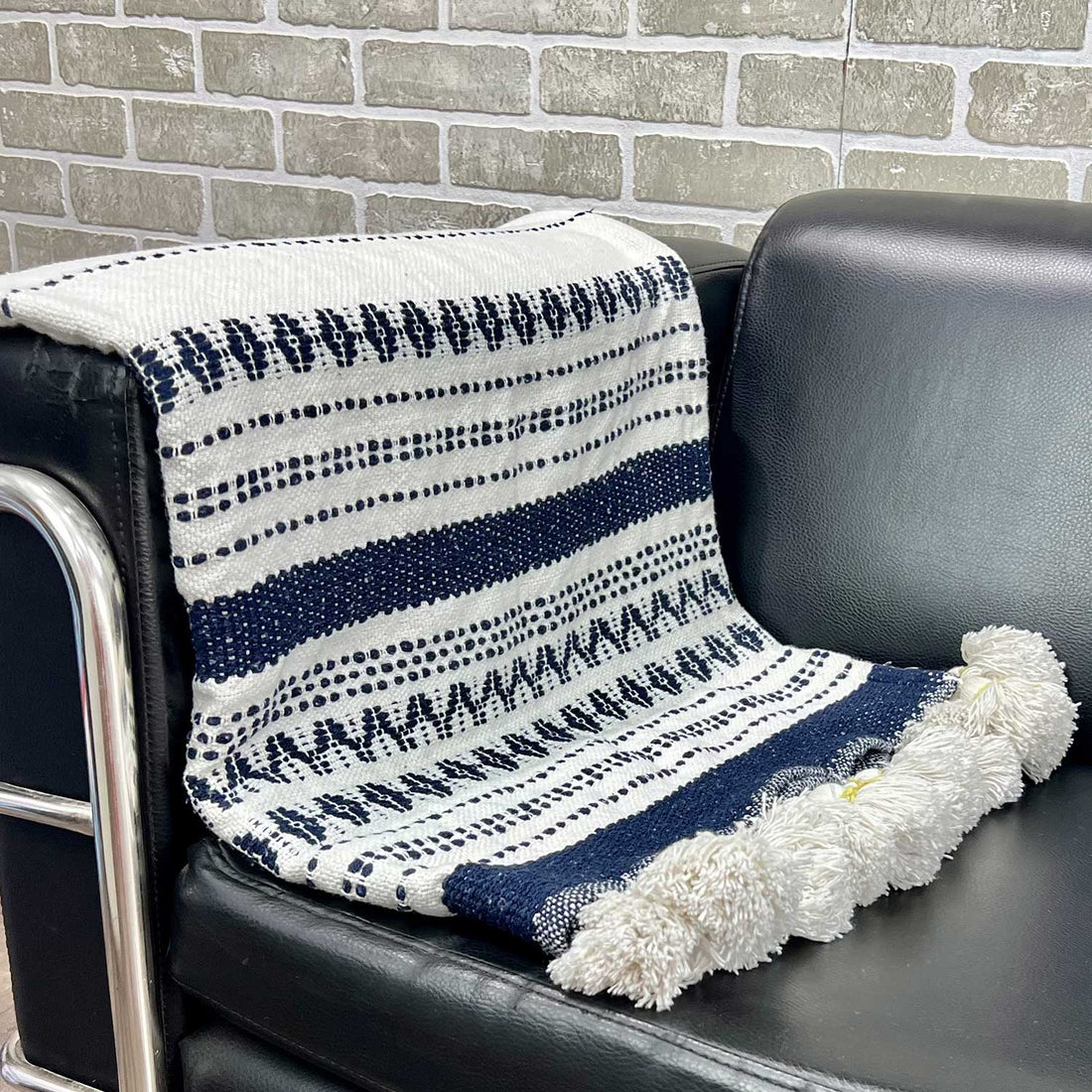 Navy Blue & White Cotton Throw with Tassels 60 inches x 40 inches
