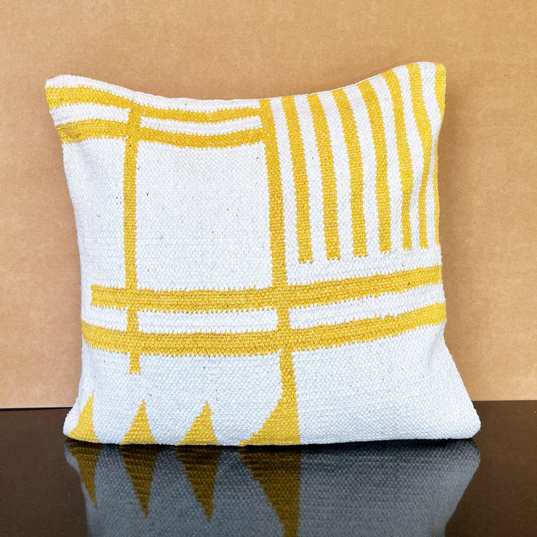 Modern White & Yellows Pure Cotton Cushion Cover - 18 x 18 inches