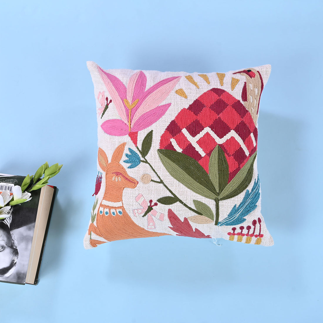 Floral Printed Pink Pure Cotton Cushion Cover - 16 x 16 inches
