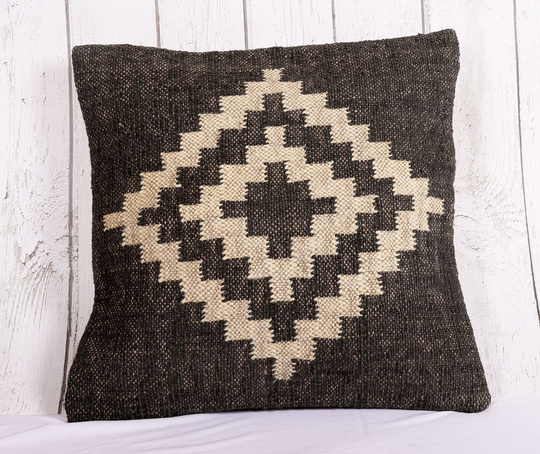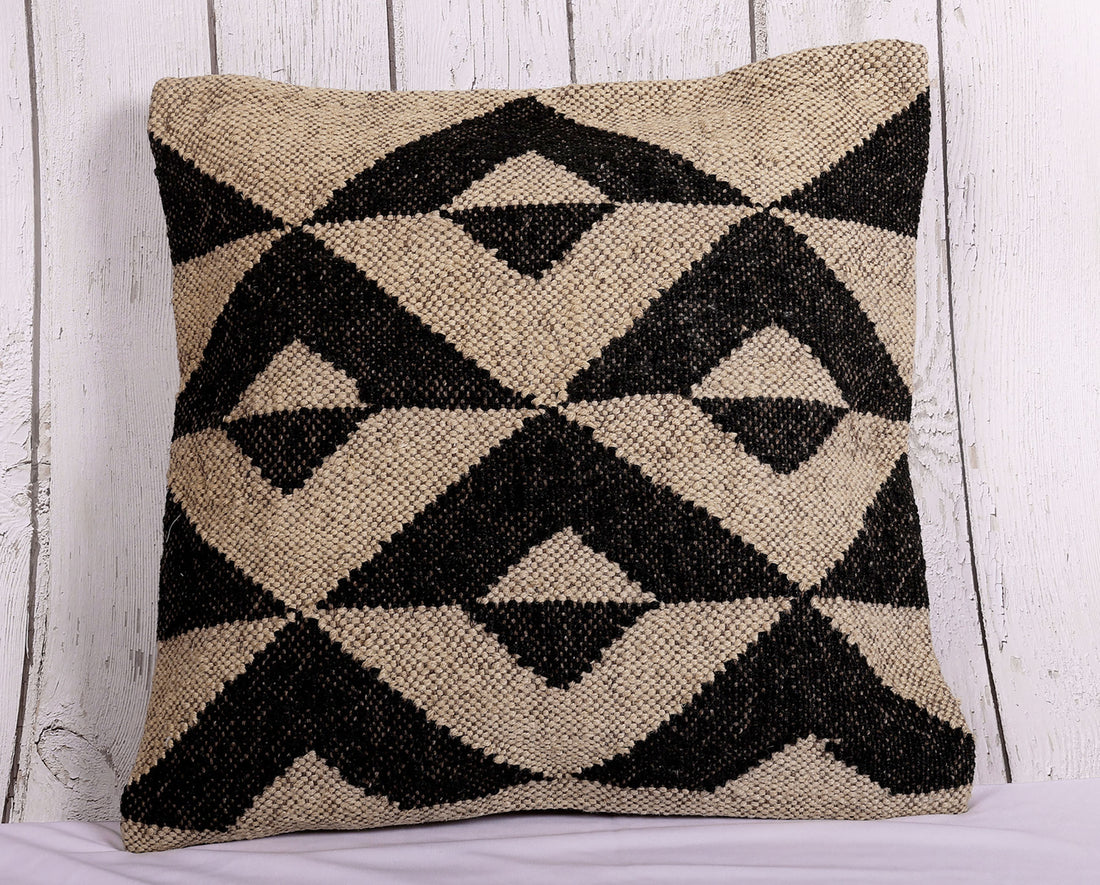 Classic Black Jute Kilim Cushion Cover - 18 x 18 inches | Peacoy