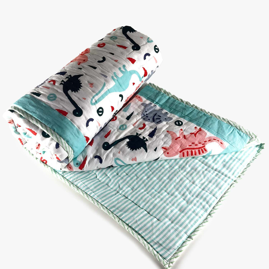 Dinosaur Double Sided Block Printed Cotton Quilt Single 40x60 Inches