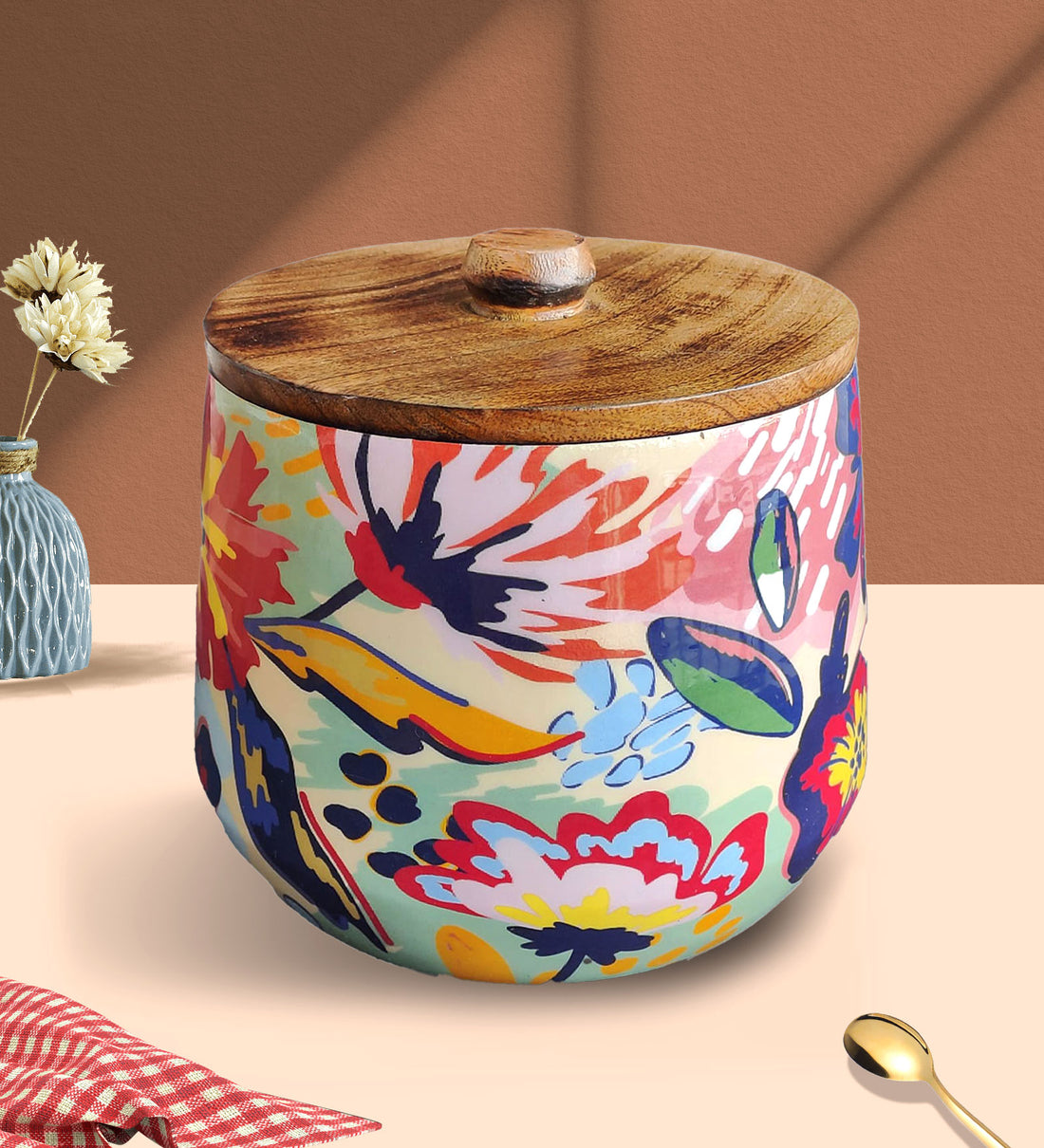 Abstract Floral Mango Wood Airtight Canister | Storage Jar