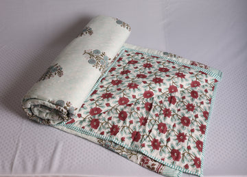Bring the softness of nature to your home with block printed quilt. Made of pure...