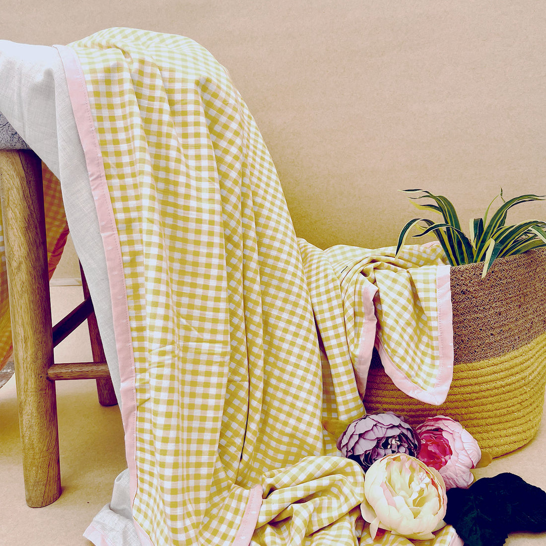Pure Cotton Sunshine Yellow Chequer Single Blanket - 60 x 90 inches