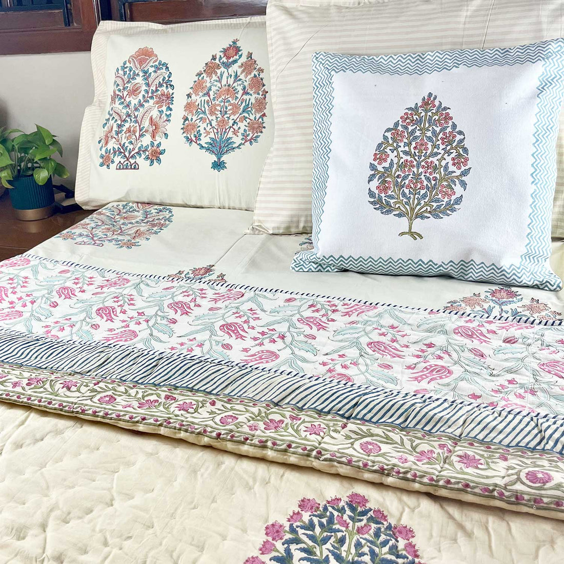 Peacoy offers a great collection of Jaipur bed sheets, with charming designs and the best quality product. We are committed to providing you best quality block printed designer bed sheets with matching cushion covers. We offer bed sheets of different prices and sizes for satisfying the different needs of our customers. We offer comfortable bedsheets in different sizes like single, king, double, and luxury queen bed sheets. You can choose from a large collection of bed sheets online.