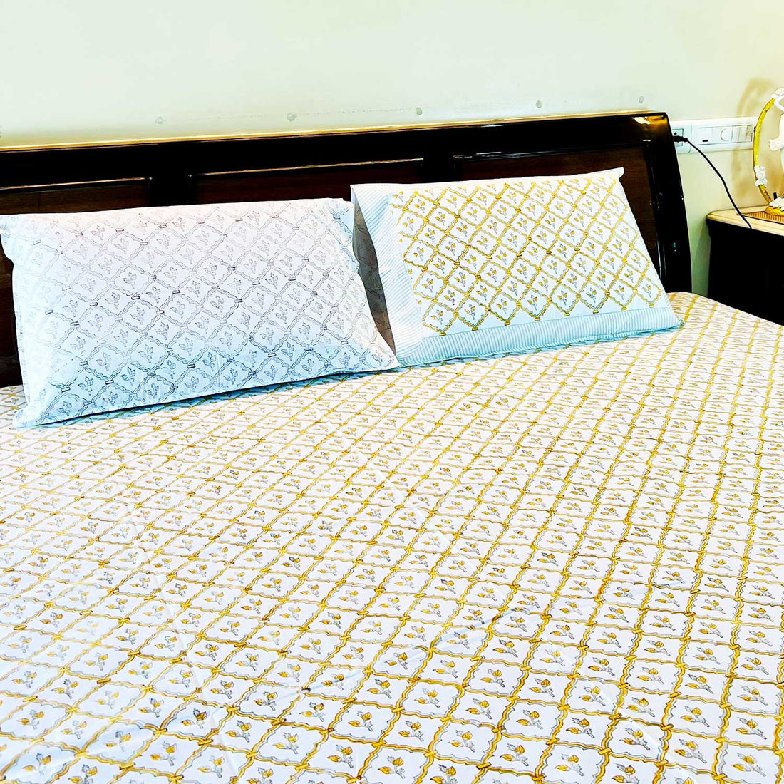 Yellow Jaal Jaipuri Double Bedsheet 108 inches x 108 inches