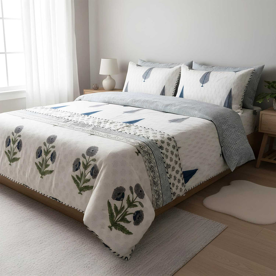 Peacoy offers a great collection of Jaipur bed sheets, with charming designs and the best quality product. We are committed to providing you best quality block printed designer bed sheets with matching cushion covers. We offer bed sheets of different prices and sizes for satisfying the different needs of our customers. We offer comfortable bedsheets in different sizes like single, king, double, and luxury queen bed sheets. You can choose from a large collection of bed sheets online.