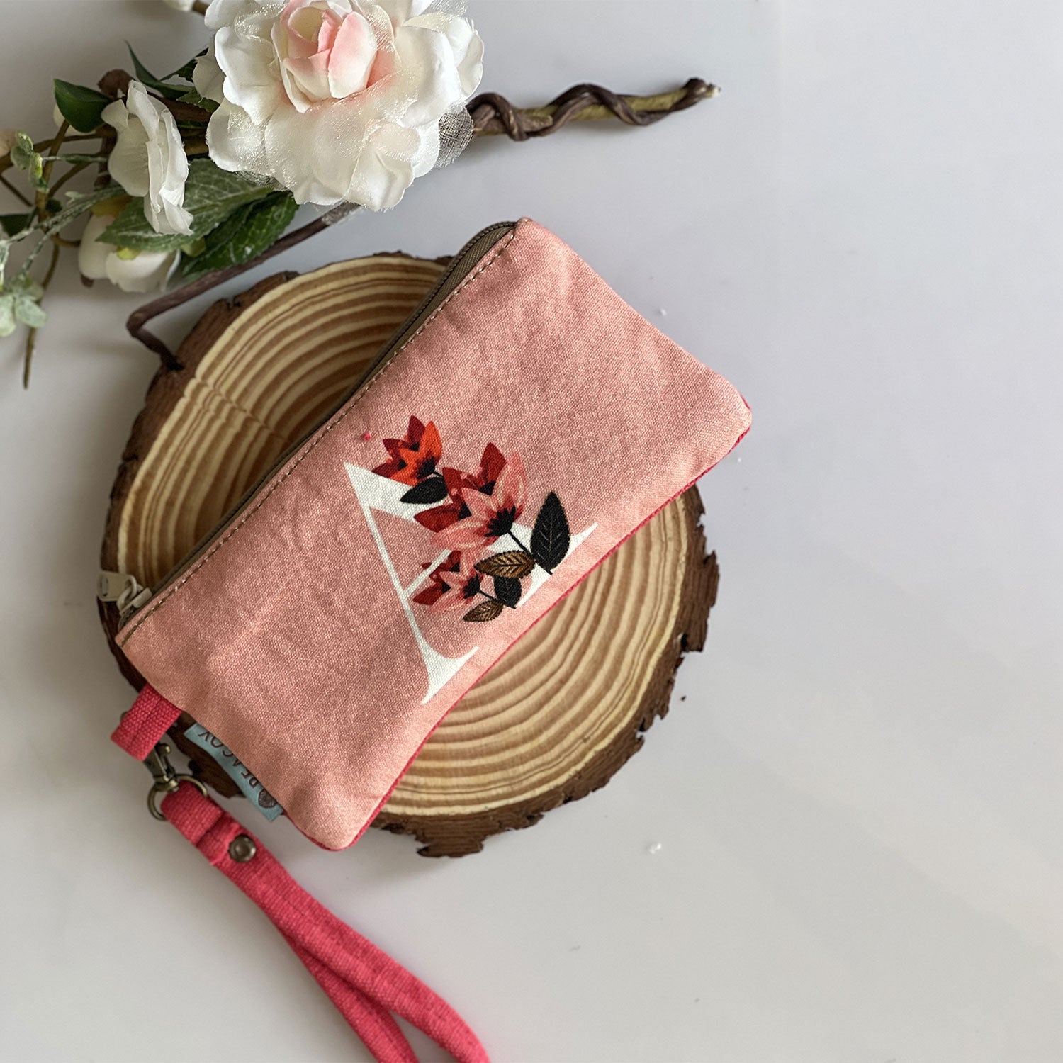 100% Cotton Pink Utility Pouch With Initial A - 7 inches x 5 inches | Peacoy