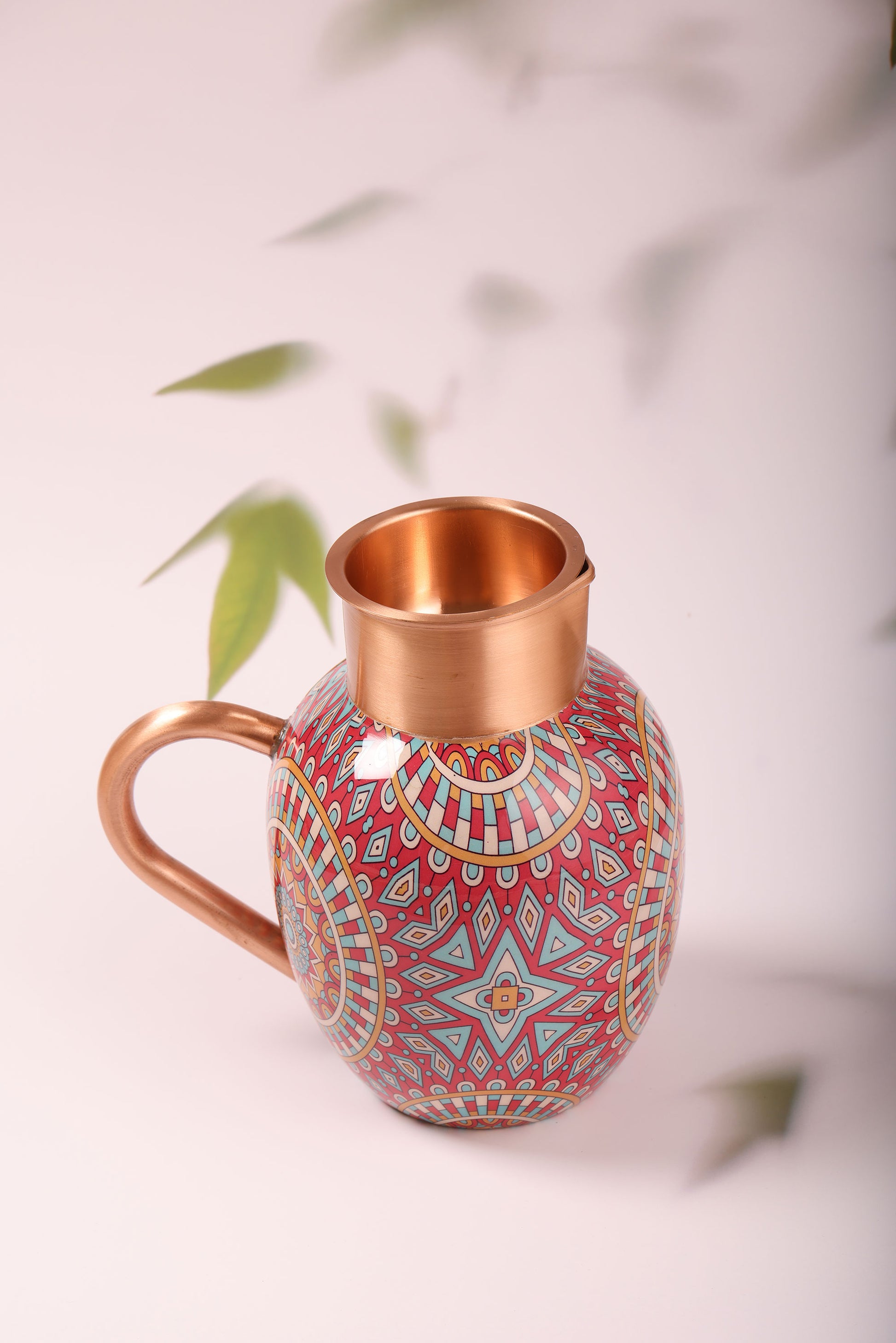 Exotic Mandala Red 100 % Pure Copper Jug with Glass - 1500 ml