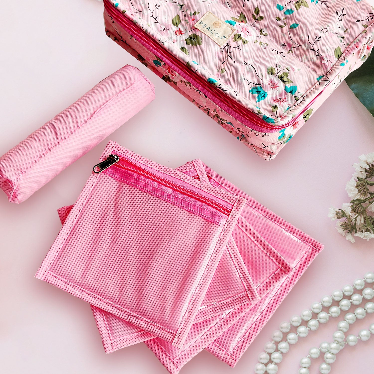 Makeup Jewellery Kit Organizer Locker Box Organizer Pouch for Necklaces Earring Ring Cosmetic Travel Storage Case for Women Girls Pink