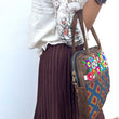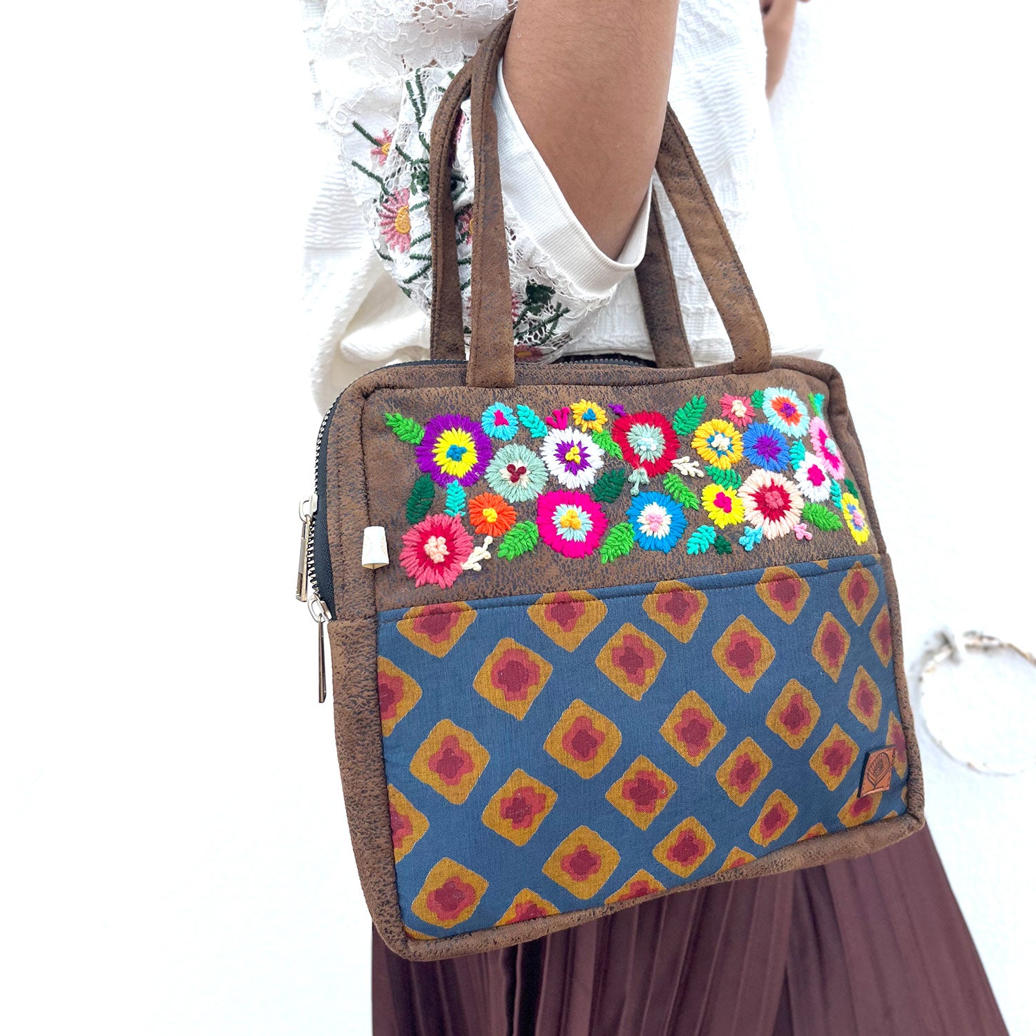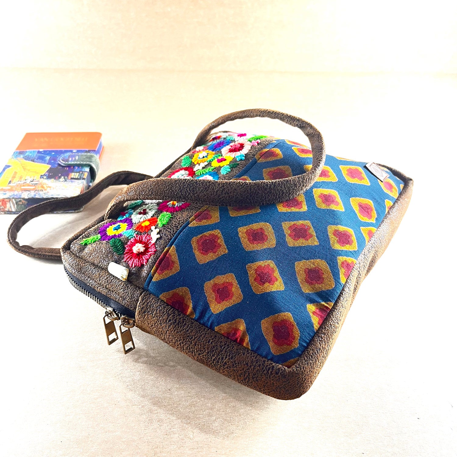Away from plain colors and patterns, this is a bag that comes to notice. It oozes out beauty, spirit and elegance. The flower embroidery on suede leather matched with a striking print, this bag conveys a distinct style. Good storage, ease of use and its sweet unforgettable appearance make this bag a popular choice.