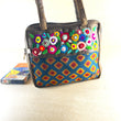 Fresh Dazzle Suede Leather Finish Floral Embroidery Handbag / Shoulder Bag - 8 x 10 x 11 inches | Peacoy