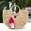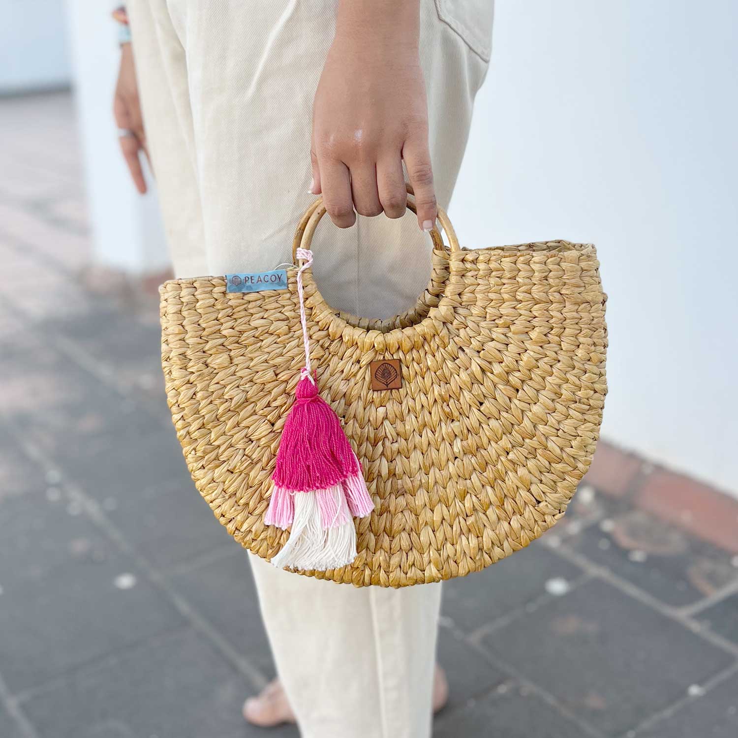 This kauna bag exudes flamboyance and class. Its distinct shape and kauna texture make it an eye-catcher. This kauna bag is a blend of designer, fancy and earthy appeal. Crafted with love and care from kauna grass, this bag is safer for the earth. The pink tassel goes in tune with the aura of the bag and conveys an artistic taste.