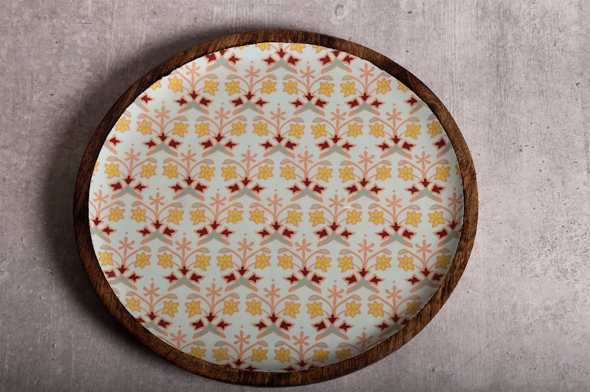 Artistic Florals Round Mango Wood Platter With Enamel Finish | Peacoy