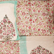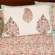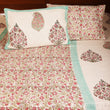Sweet Flowers Blue & Pink Block Printed 100 % Cotton Double Bed Cover Set With 2 Pillow Covers - 100 inches x 108 inches