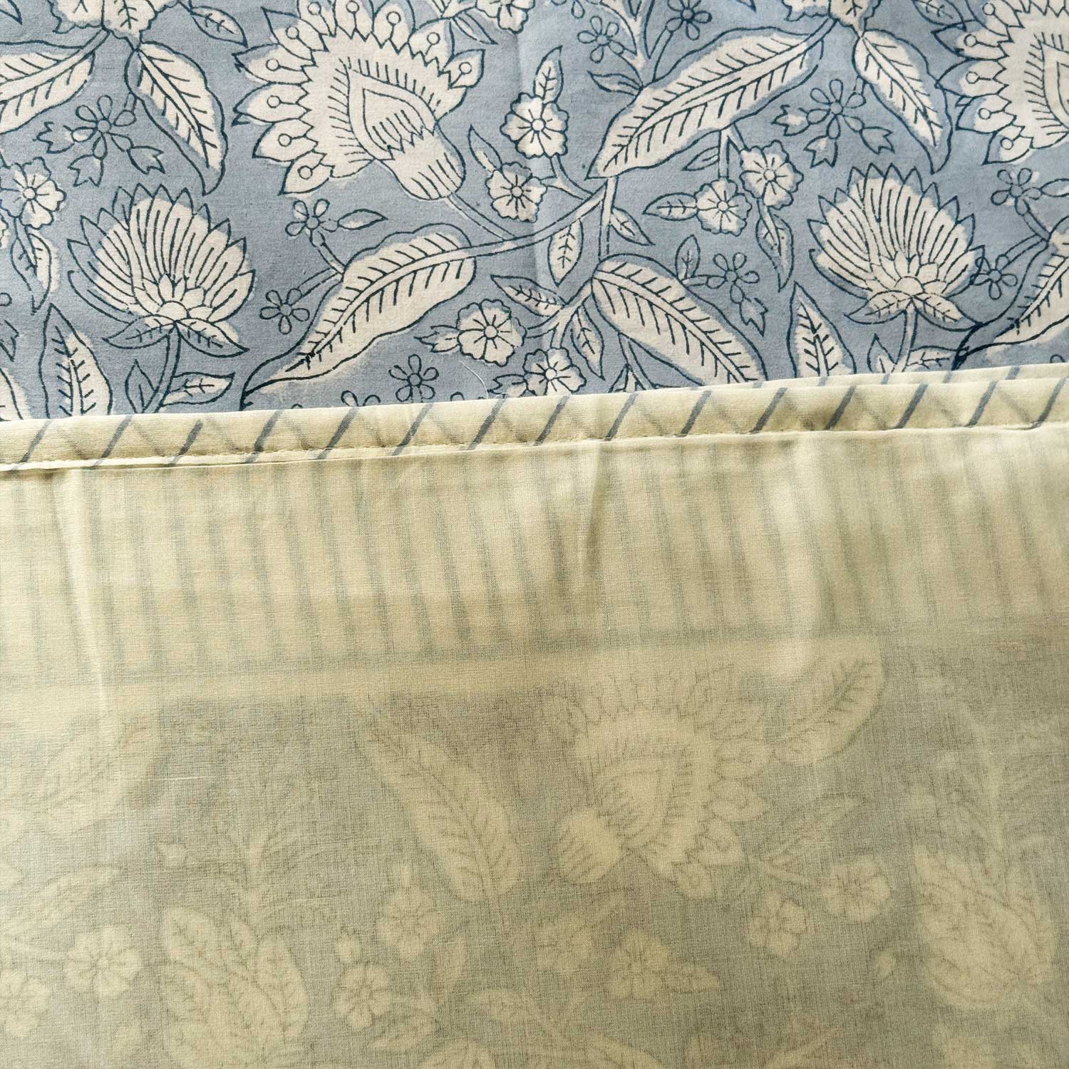 Bring the softness of nature and the charm of wildflowers to your home with block printed quilt. pure mumul, dohar with flannel sandwiched. Experience a cozy nap while at the same time revamping your bedroom. With a block-printed design and an azo-free dye, this lightweight quilt will add green allure to your room.
