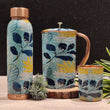 Blue Leaves 100% Pure Copper Bottle, Jug & Glass Set