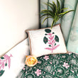 Comfort Companion Dark Green Block Printed Multipurpose Travel Kit (Set of Mat, Cushion & Blanket)