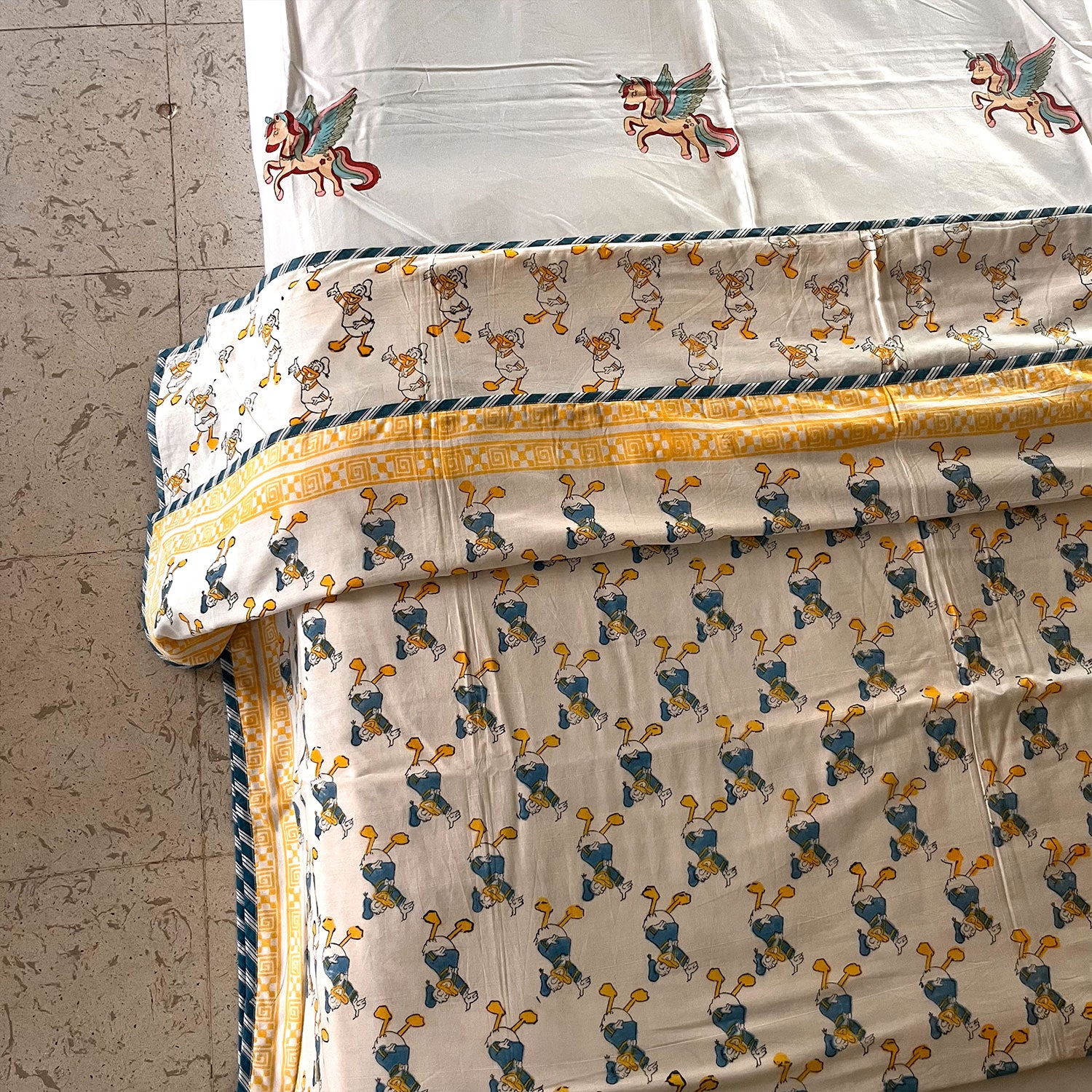 Bring the softness of nature and the cuteness of Giraffe to your home with block printed quilt. Made of pure cotton and voile fabric (mulmul), and stuffed with surgical cotton, it will tuck you into luxurious comfort. Experience a cozy nap while at the same time revamping your bedroom. With a block-printed design and an azo-free dye, this lightweight quilt will add green allure to your room.