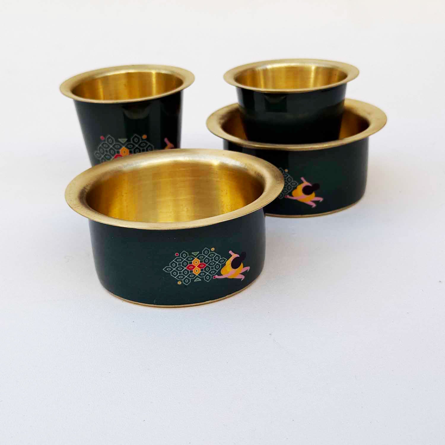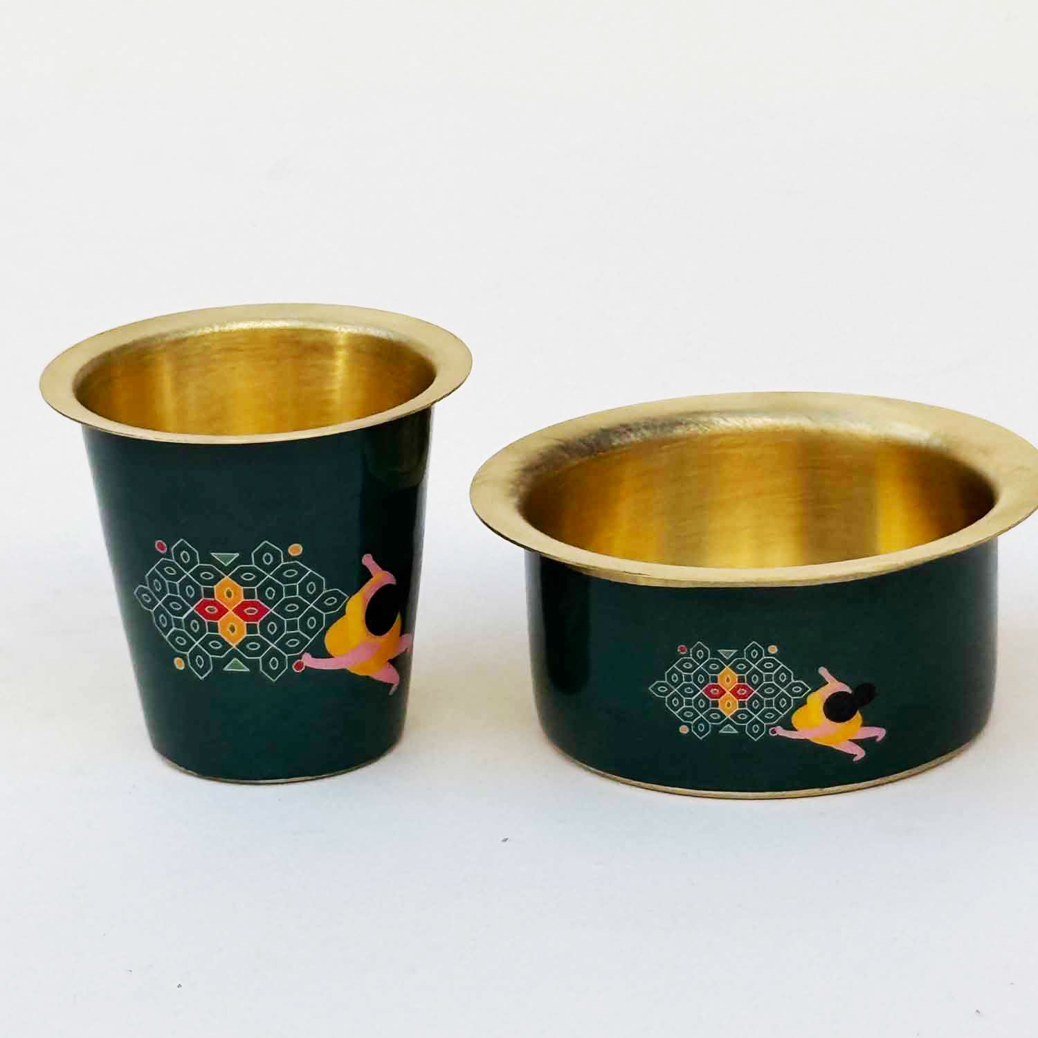 Dark Blue Ethnic Kolam Print Dara Glass Set | Set of 2