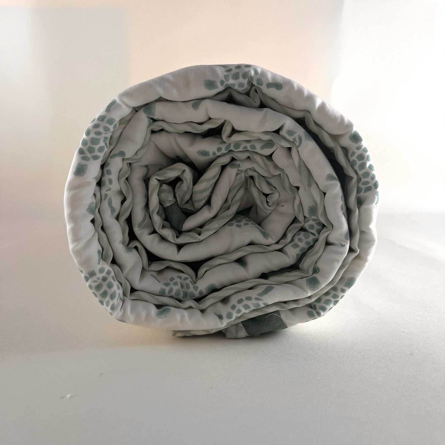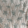 Bring the softness of nature and the cuteness of turtle to your home with block printed quilt. Made of pure cotton and voile fabric (mulmul), and stuffed with surgical cotton, it will tuck you into luxurious comfort. Experience a cozy nap while at the same time revamping your bedroom. With a block-printed design and an azo-free dye, this lightweight quilt will add green allure to your room.