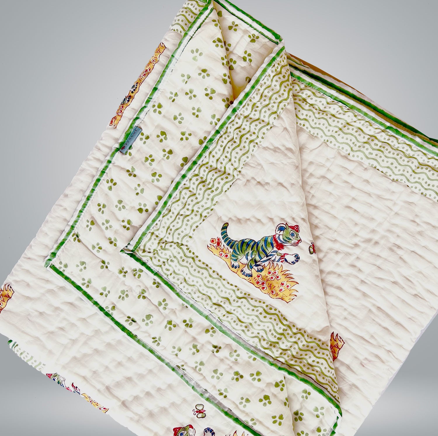 Kids Cute Tiger Green Soft Cotton Printed Quilt - 40 inches x 60 inches