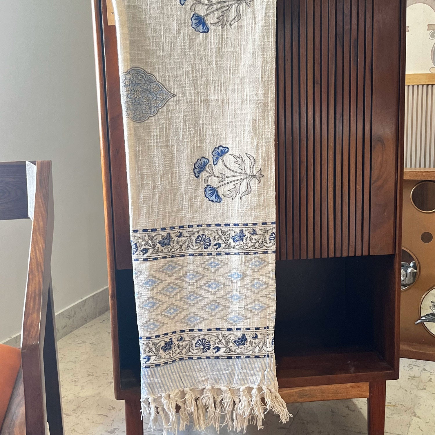 Floral Blue White Block Printed 100 % Cotton Throw - 60 inches x 48 inches