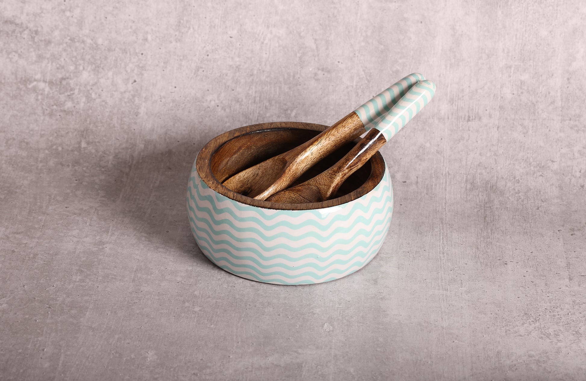 Gift Hamper of Sea Green Square Mango Wood Platter With Enamel Finish - | Peacoy