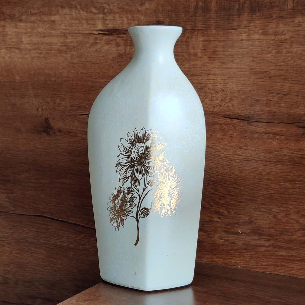 Aesthetic, delicate and statement-making at the same time, this ceramic flower vase pleases the heart the moment one lays their eyes on it. The golden wildflower spreads artfully on the rich ivory coloured surface. This table and corner vase will sit with elegance and amplify the beauty of both real and artificial flowers. Made of ceramic, it is not only exquisite but also friendly to the environment.