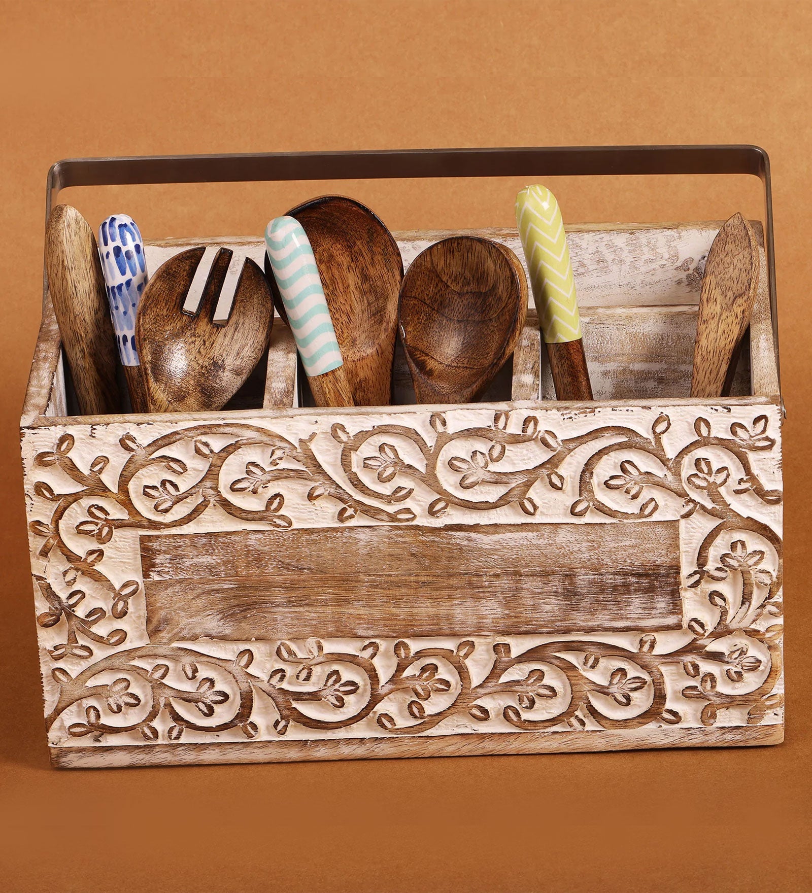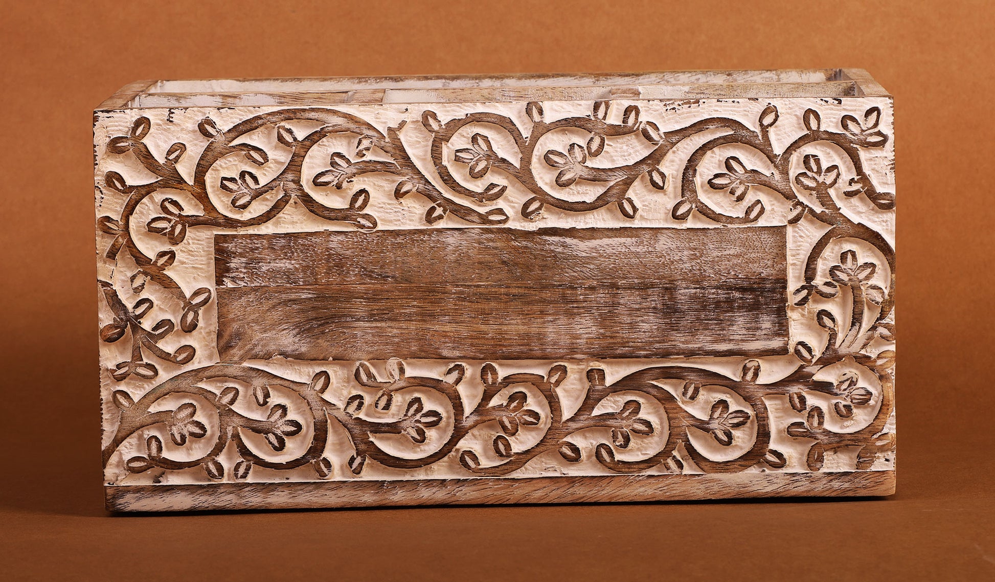 Mango Wood Artistic Handcrafted Multi Purpose Organizer - 12 x 8 x 6 inches | Peacoy