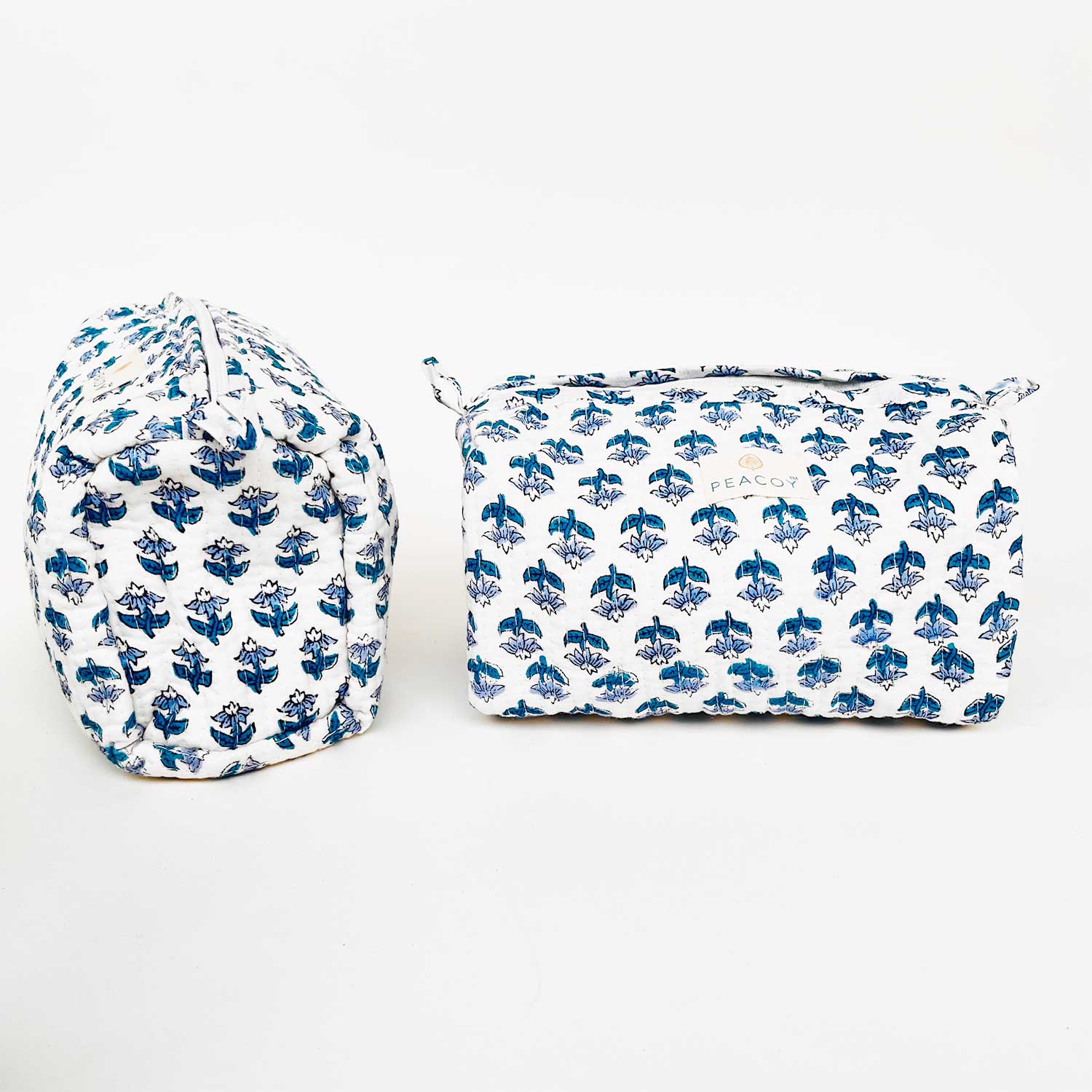 Multi Utility Travel kits Dark Blue Flower Printed Pouch (Set of two)