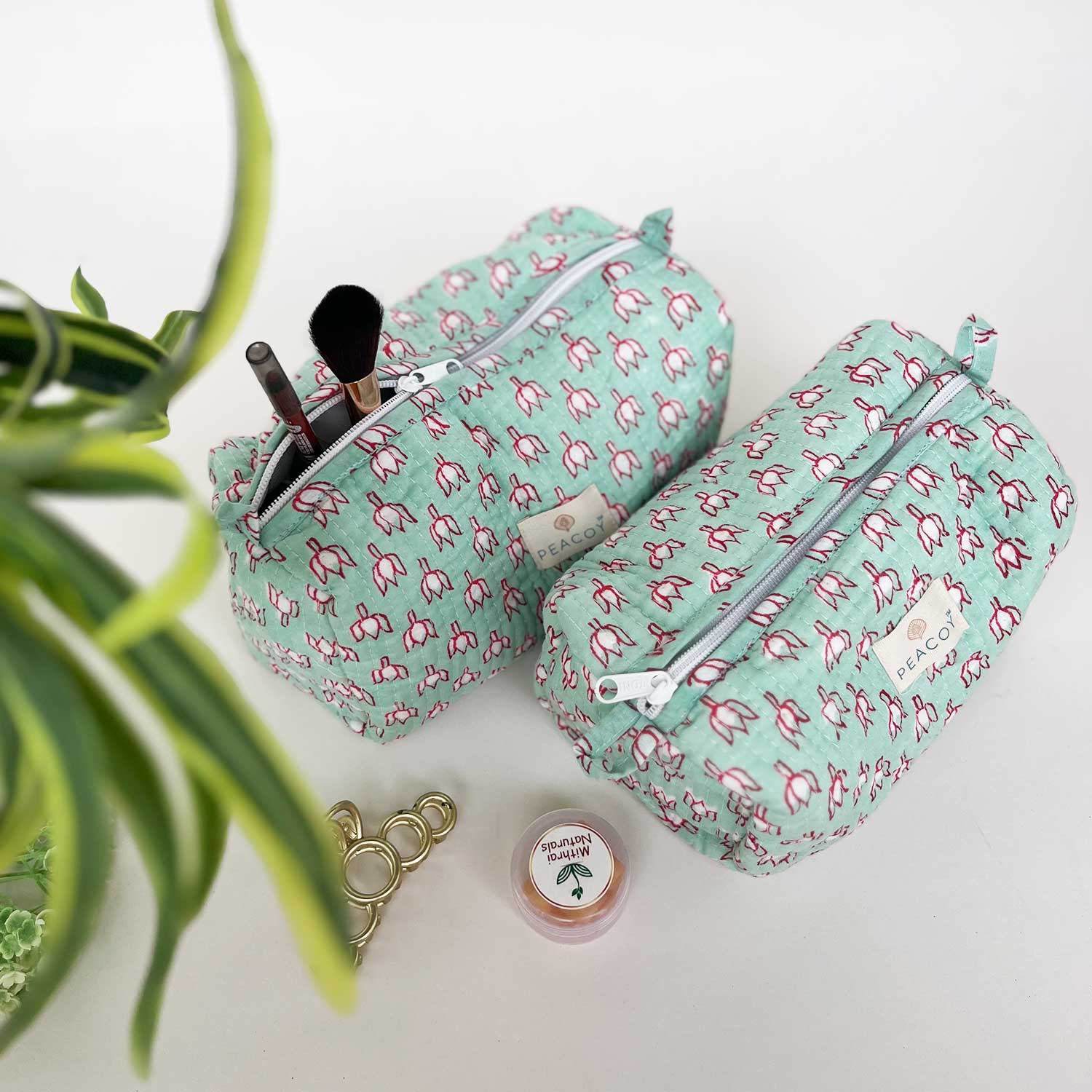 Multi Utility Travel kits Green Floral Print (Set of two)