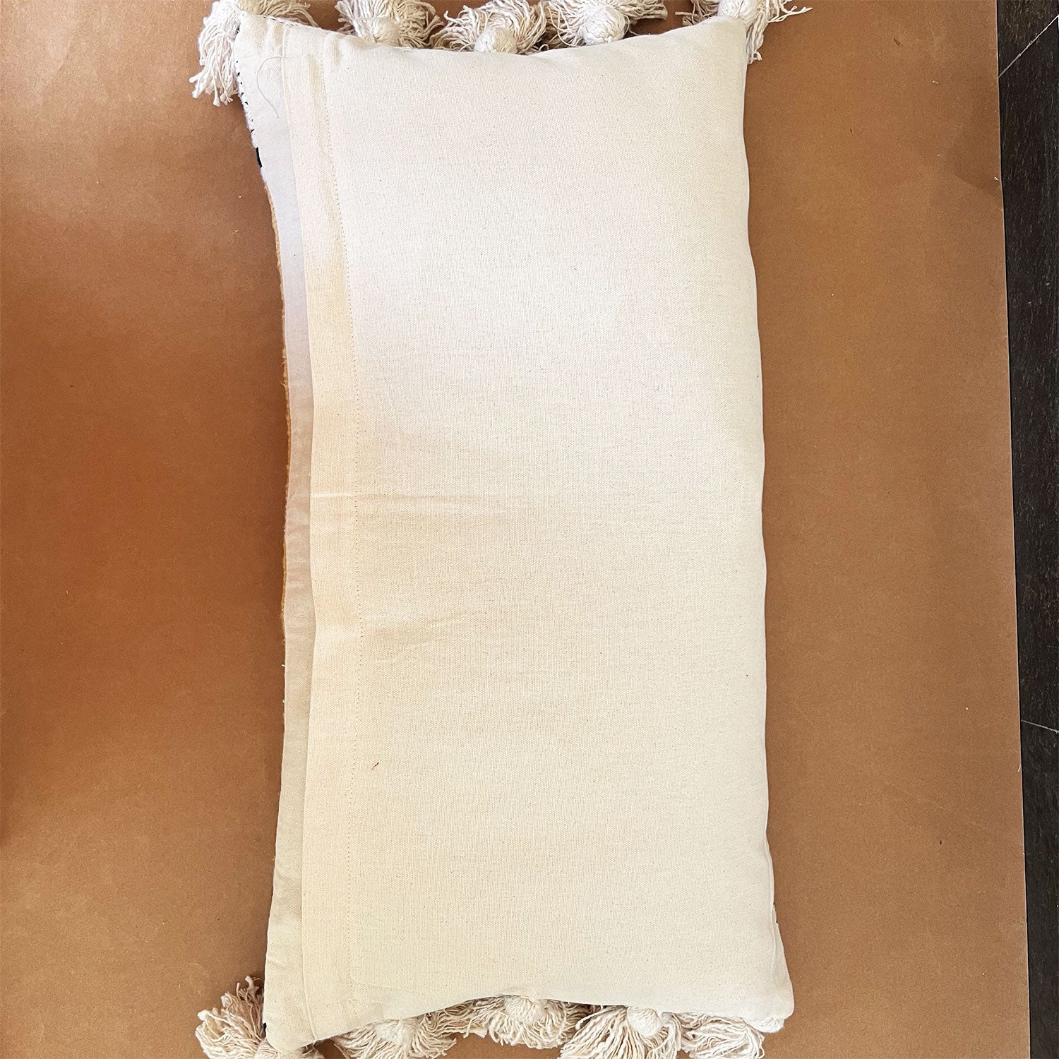 Mustard Pure Cotton Lumber pillow Cover with Bushy Cotton Tassels - 26 x 14 inches
