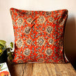Muted Orange Bloom Block Print Cotton Cushion Cover - 16 x 16 inches
