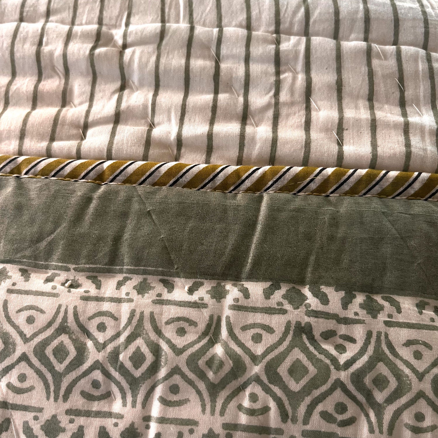 Bring the softness of nature and the charm of wildflowers to your home with block printed quilt. pure mumul, dohar with flannel sandwiched. Experience a cozy nap while at the same time revamping your bedroom. With a block-printed design and an azo-free dye, this lightweight quilt will add green allure to your room.