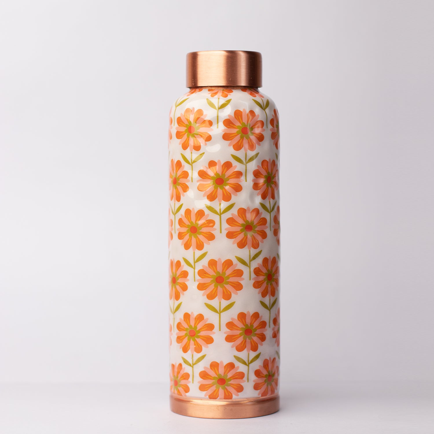 Orange Block Flower Pattern| 100% Pure Copper Bottle|950 ml | Peacoy
